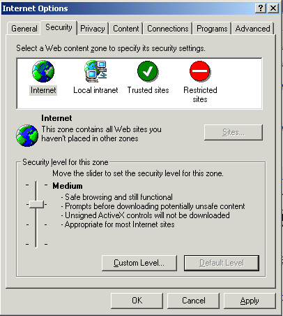 Cookies are used to temporarily store information on your computer for use by the website, the amount of information is typically small, like a single ID number. Many sites need cookies to be enabled before they can function correctly. Symptoms of cookie related problems can be a site repeatedly sending you to the wrong page, refusing your attempts to log in or losing track of information about you in some other way. For more information about what cookies are you can read Microsoft's explanation. For a detailed discussion of cookies see CookieCentral a popular website on the subject. If you aren't sure if you have cookies enabled or not you can try Weblink's cookie test. To turn cookies on in Internet Explorer 6: